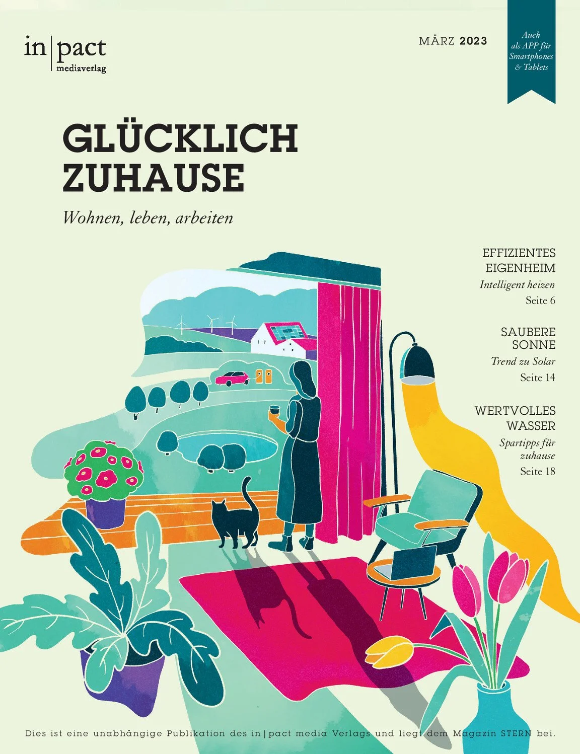Cover and illustrations for the issue "Glücklich Zuhause" by in|pact mediaverlag, 2023, Supplement of the Stern Magazine